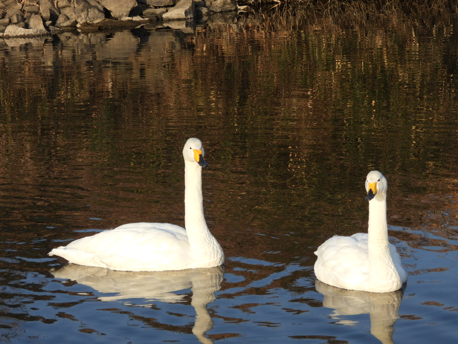 今朝。 Duck4の定点ポイントには、 ハクチョウさんが115羽(幼鳥10羽)いまし