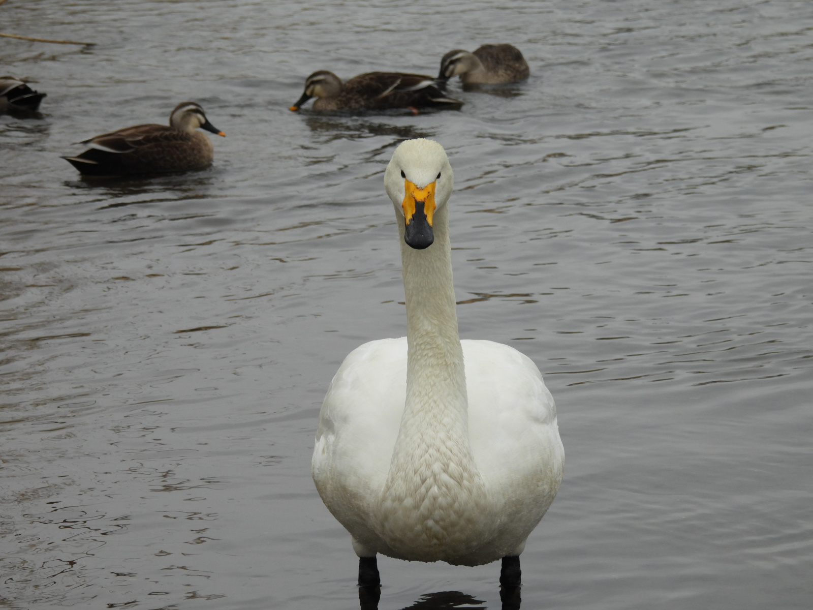今朝。 久しぶりに雨が降っていました。 Duck4のポイントには ハクチョウさんが8