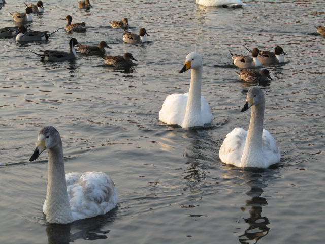 春の渡りで、飛来組のハクチョウさんが離れて行ったのでしょうか。