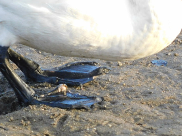 (右の水かきの大部分が壊死しているコハクの幼鳥ちゃん🦢)