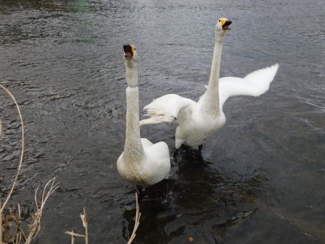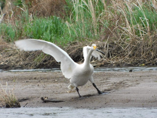 立ち寄り組のコハクチョウさんが3羽残っていました。