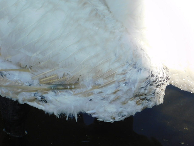 (古い羽が抜け落ちているミルクちゃん🦢)