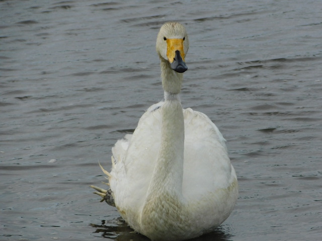 (今朝のたくさんの古い風切羽も抜け落ちているノンちゃん🦢)