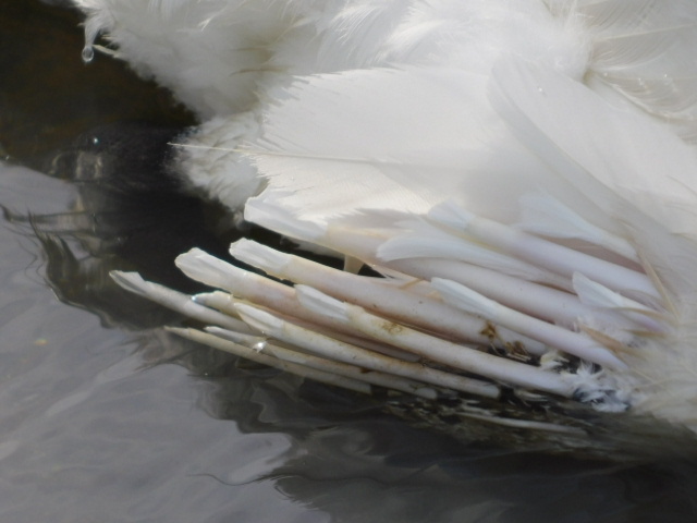 (今朝のチンさんの新しい羽の状態🦢)