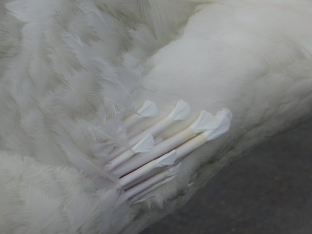 (ケガした部位からまた新しい羽軸が伸びてきた幼鳥ムーアちゃん🦢)