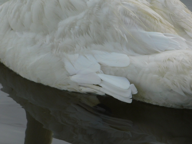 (古い風切羽も抜け落ちている今朝のメイちゃん🦢)
