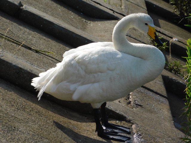 メイちゃんは、土手にあげて羽繕いをしていました。