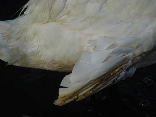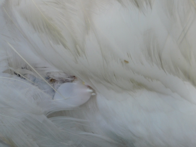 (新しい羽軸2本が伸びていた今朝のメイちゃん🦢)