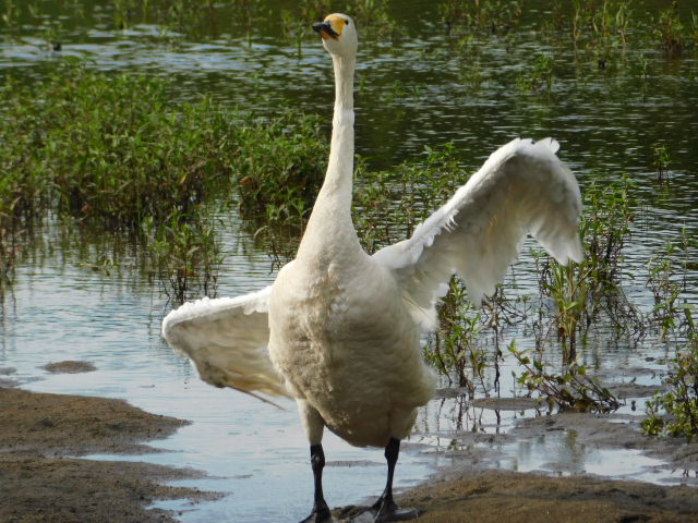 (新しい羽を広げている換羽29日目のミルクちゃん🦢)