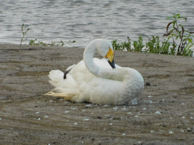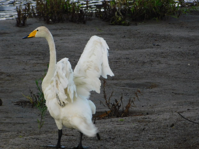 滞在組のハクチョウさんの後を追いかけて来ました。
