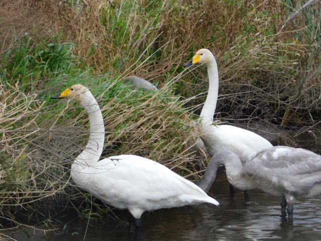 そこには、2羽の幼鳥を連れたオオハクチョウさんもいました。