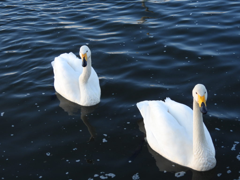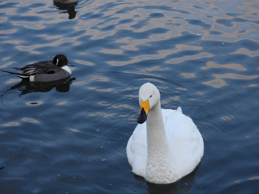 キリちゃんとぽっちゃりしたキリちゃんとよく鳴き交わすハクチョウさんも