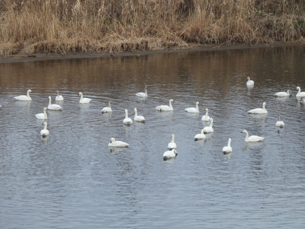 大きなコハクチョウさんの群れが下流域に今朝もいました。