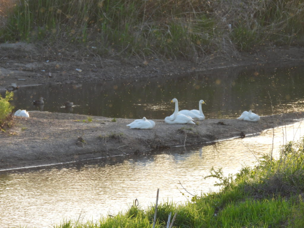 (上流まで移動していた昨日の夕方の6羽の滞在組🦢)