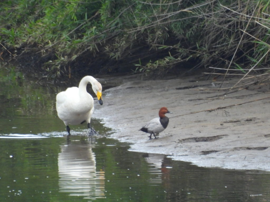 (ホシハジロくんと一緒にいたアドちゃん🦢🦆)