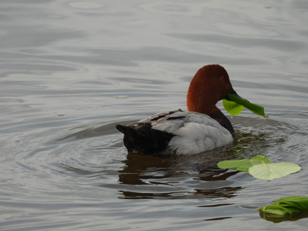 (葛の葉っぱを食べようとするホシハジロくん🦆)