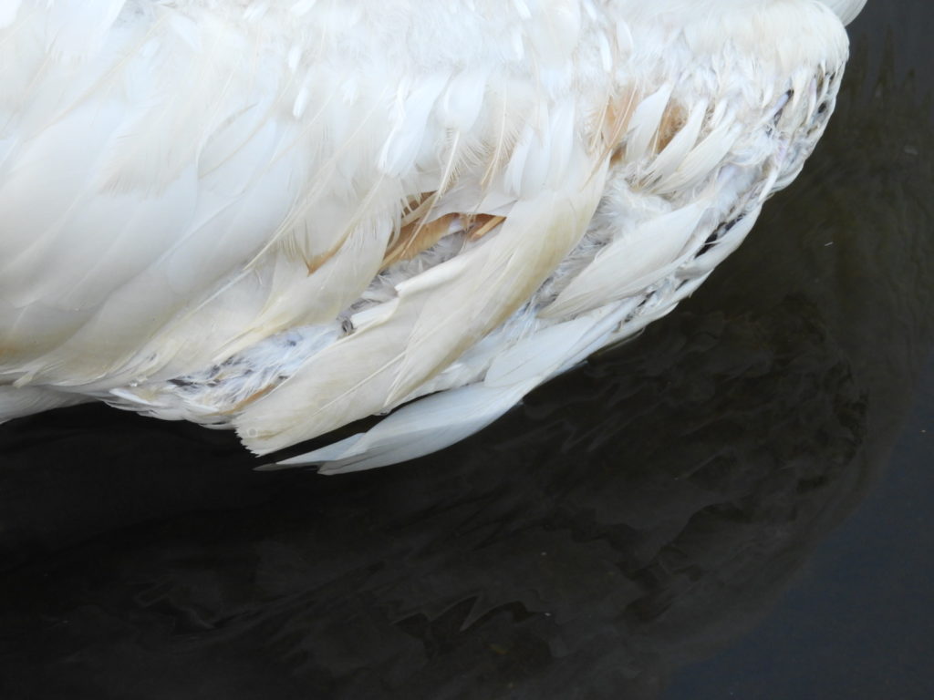 この時期は皆頭が汚れて、頭の毛並みが悪くなりますね。川の汚れだけではなく、換羽で頭の毛などこまかいところのお手入れが難しくなるのでしょうか?