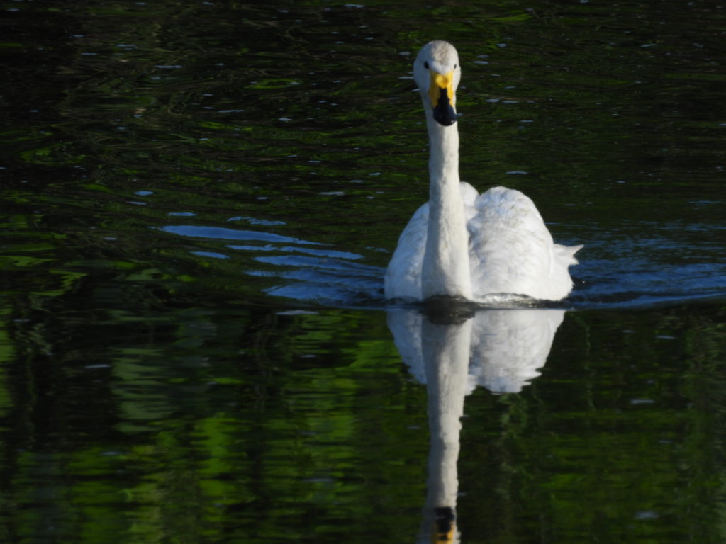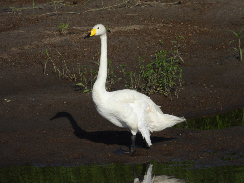 遠くには、2羽のハクチョウさん。