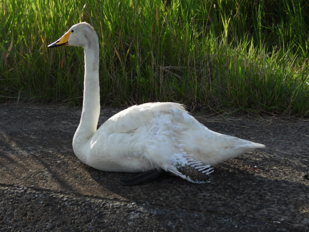 (土手に座り込むアドちゃん🦢)