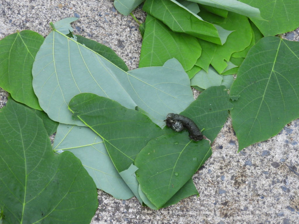 深緑色の糞を落としていました。