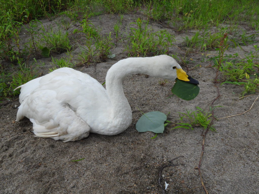 (葛の葉っぱを食べるミルクちゃん🦢)