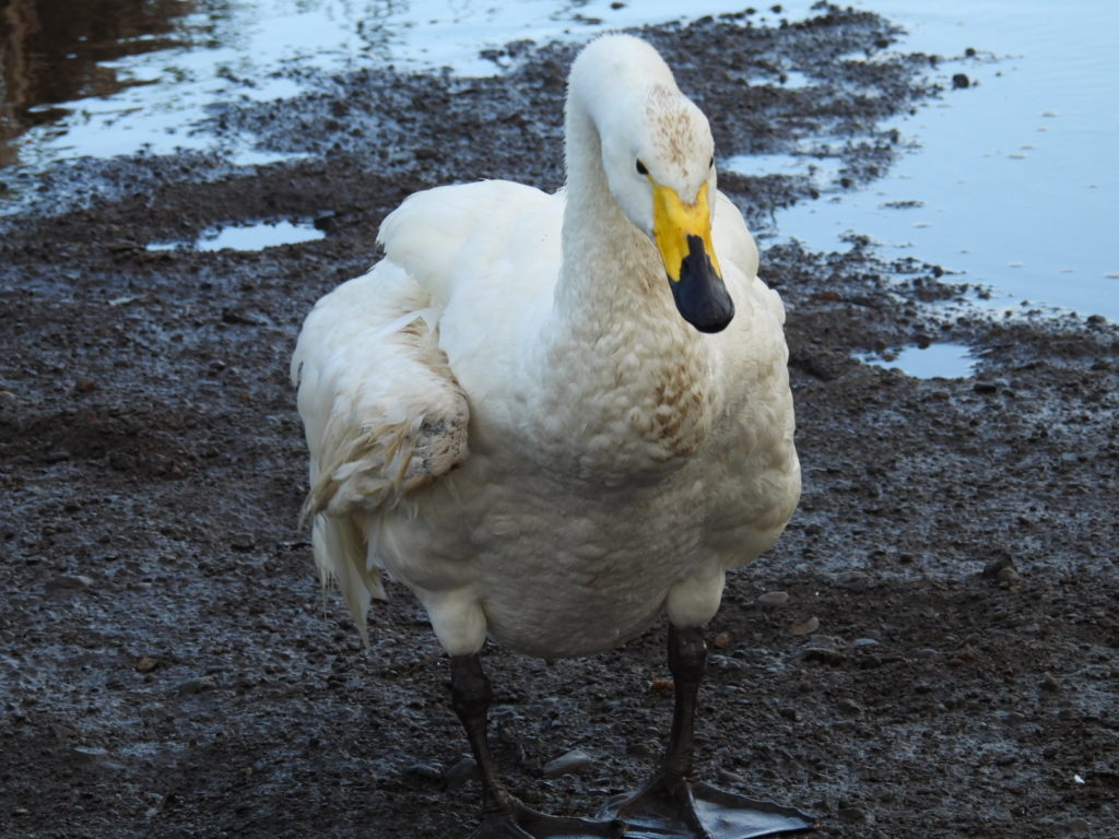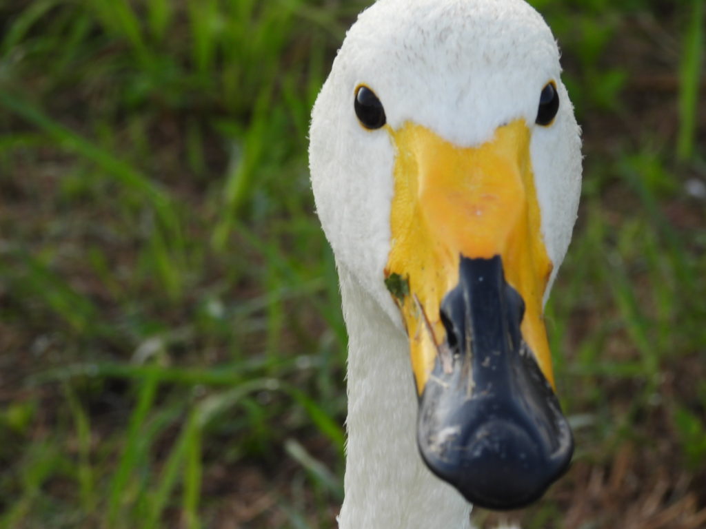 (クチバシに緑色の草のようなものがついていたデコイちゃん🦢)