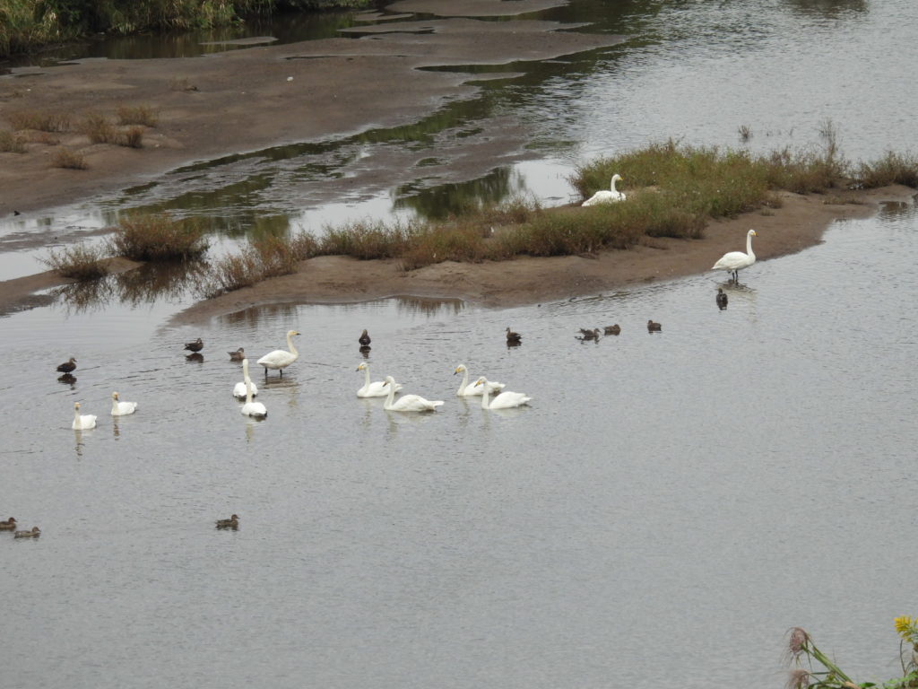 そのうち1組は、40羽ほどのハクチョウさんが群れをなしていました。