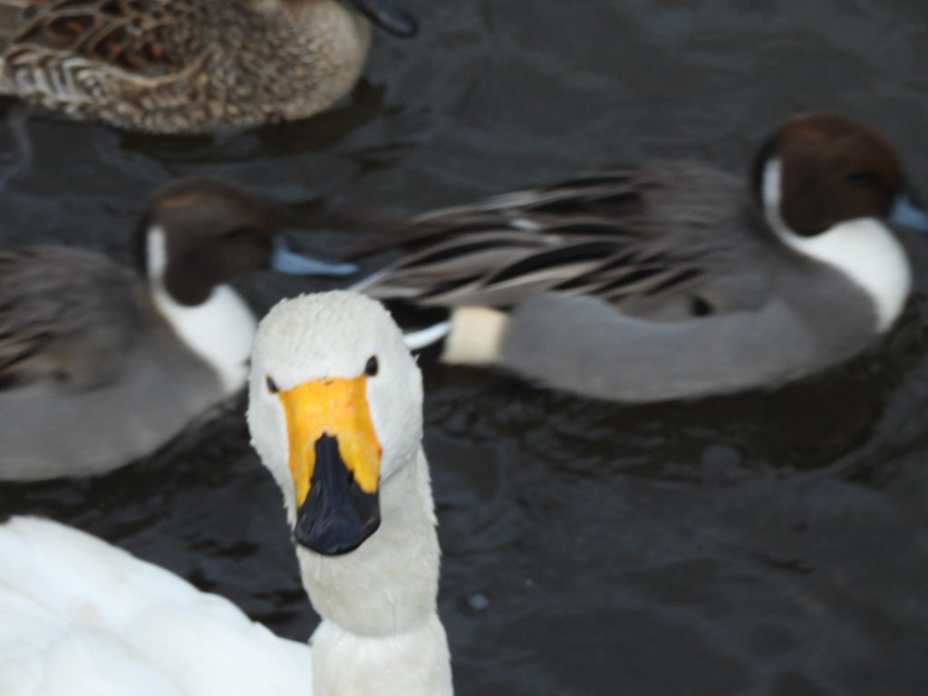 「モリスさん!クチバシが白いので年を取っているハクチョウさんだなあ!」