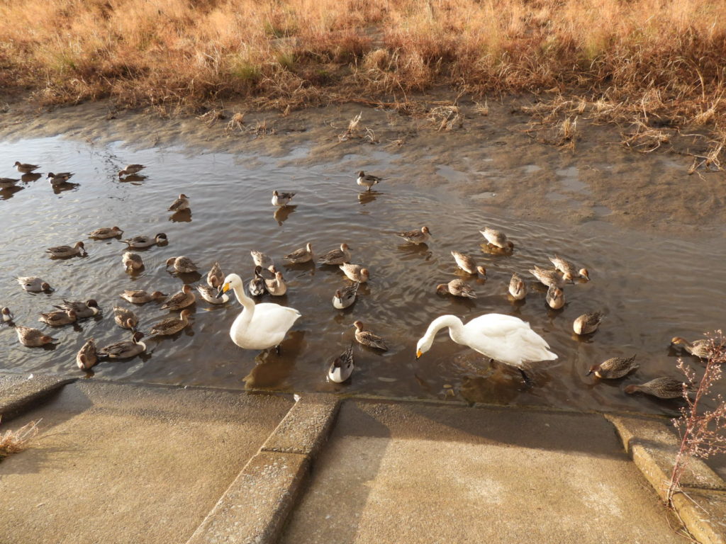 ハクチョウさんが129羽(幼鳥13羽)いました。