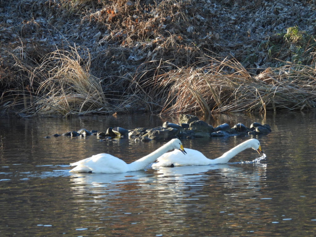 その後、飛来のオオハクチョウさんが近づいて来たので、