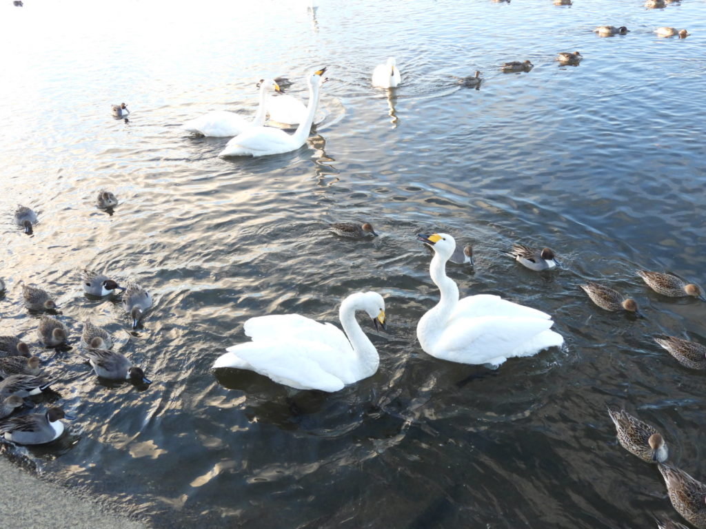 ハクチョウさんが145羽(幼鳥17羽)いました。