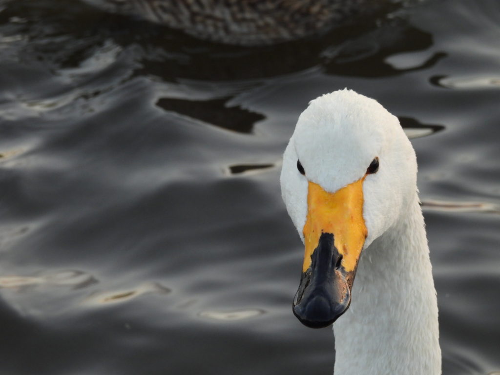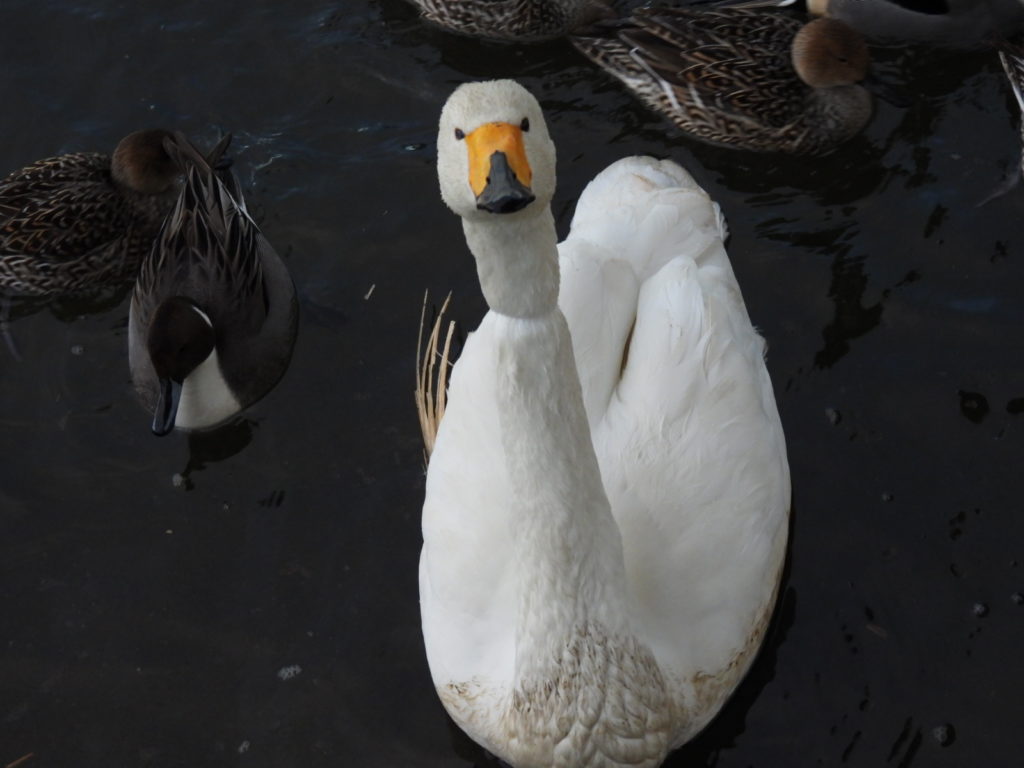 首が曲がっている1羽のオオハクチョウさんがいました。