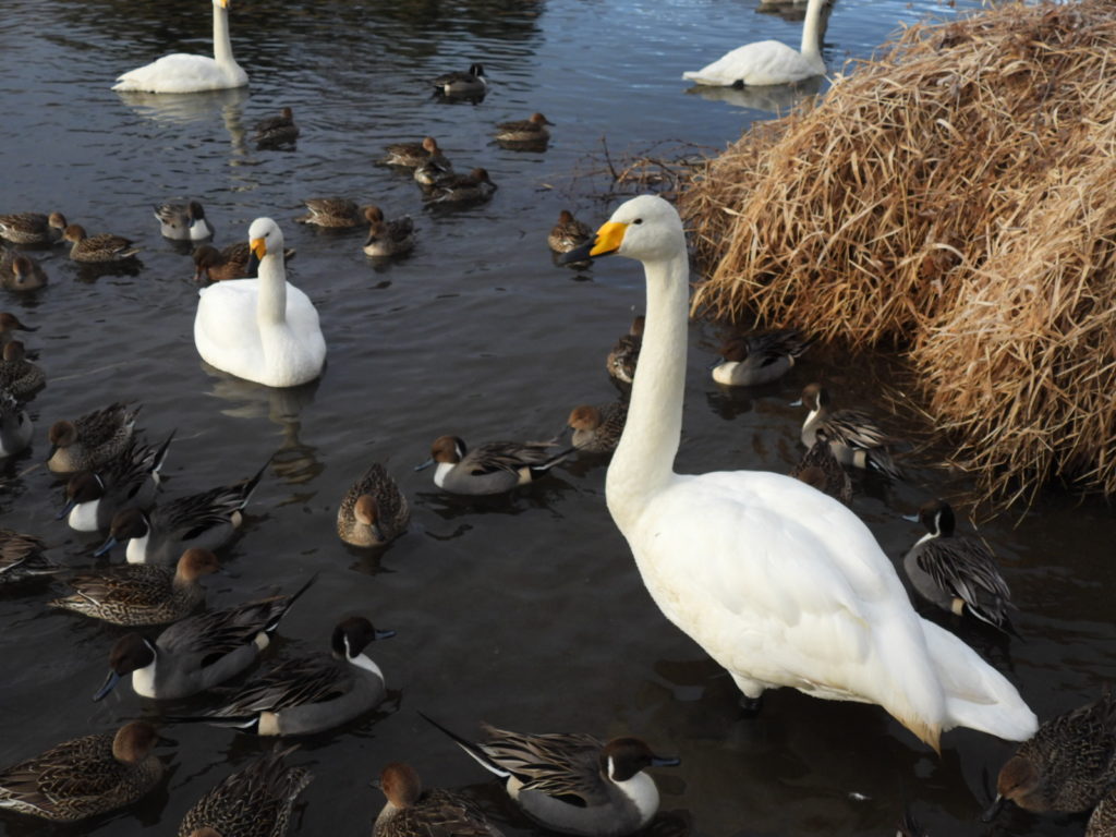 うちコハクチョウさんが69羽(幼鳥5羽)でした。