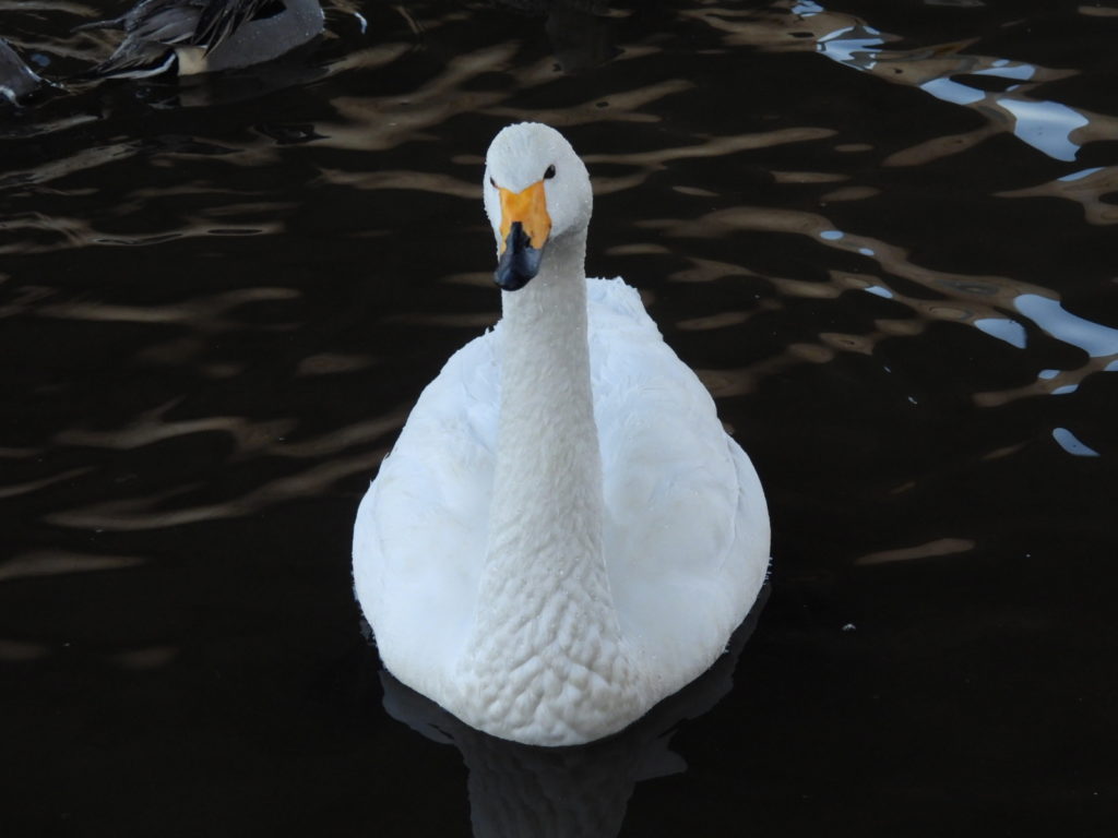 (カーブちゃんと一緒に泳いでいる迷子のオオハクチョウさん🦢)