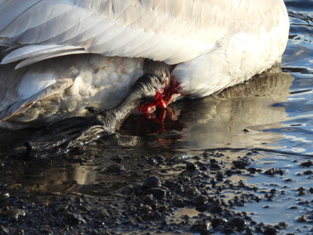 そして、その足をケガしている幼鳥オオハクさんの写真を撮影。