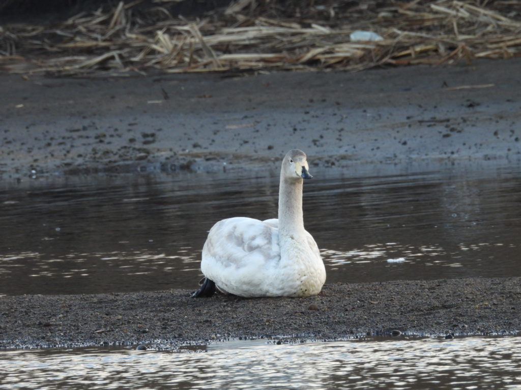 (ケガして座り込むライトちゃん一家の幼鳥🦢)