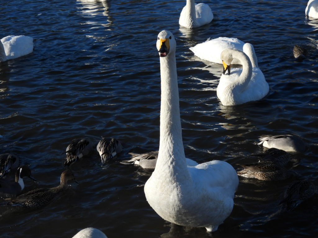 飛来組のキーガンちゃん他多くのハクチョウさんも