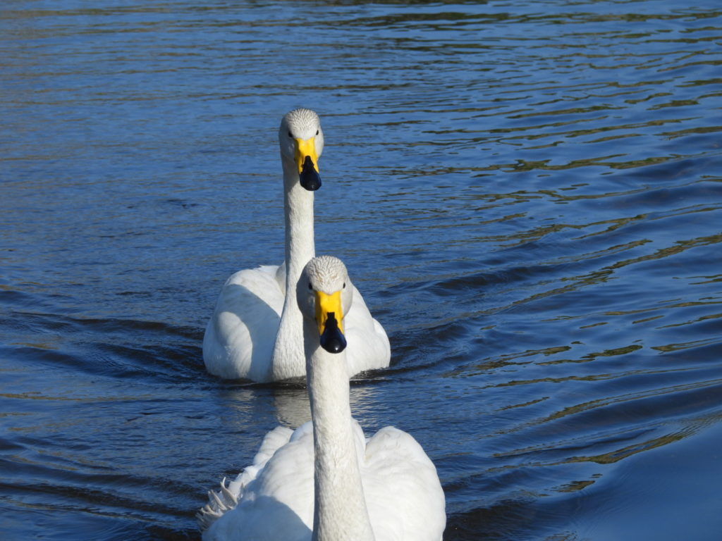 「2羽が上流へと泳いで行ったよ!」