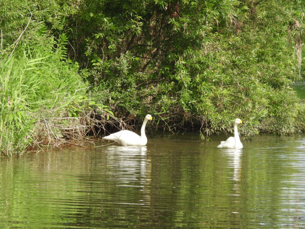 (中洲の茂み近くにいるノンちゃんとムーアちゃん🦢)