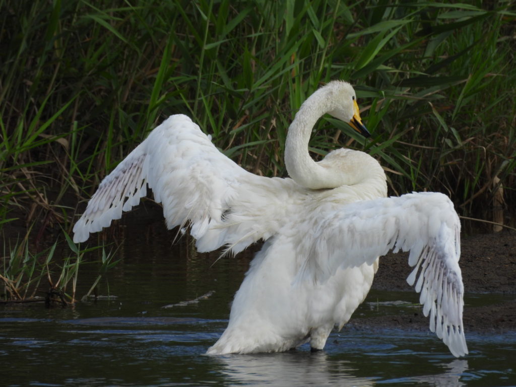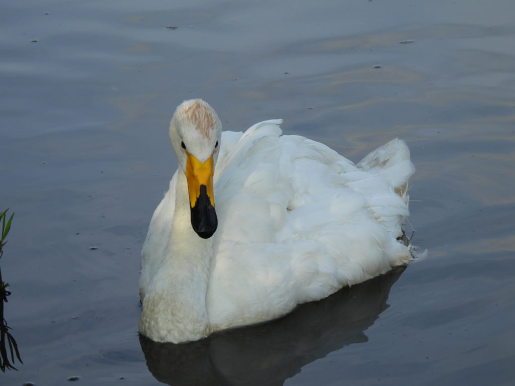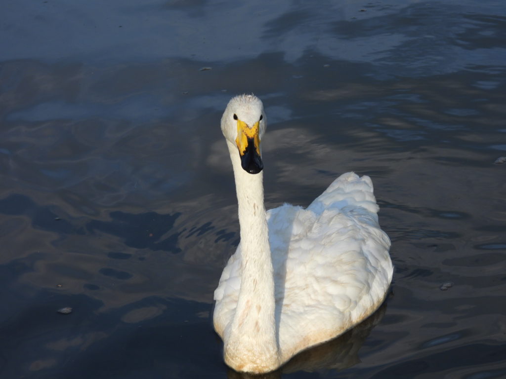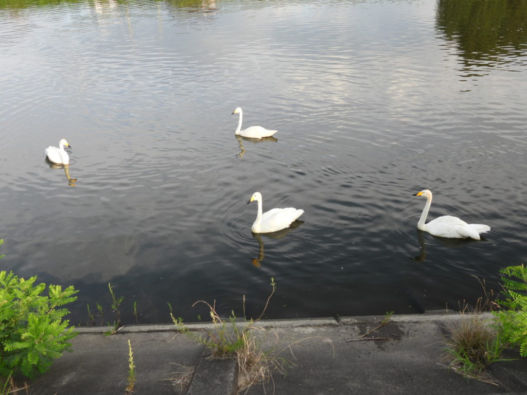 4羽のオオハクチョウさんがすでに待っていました。