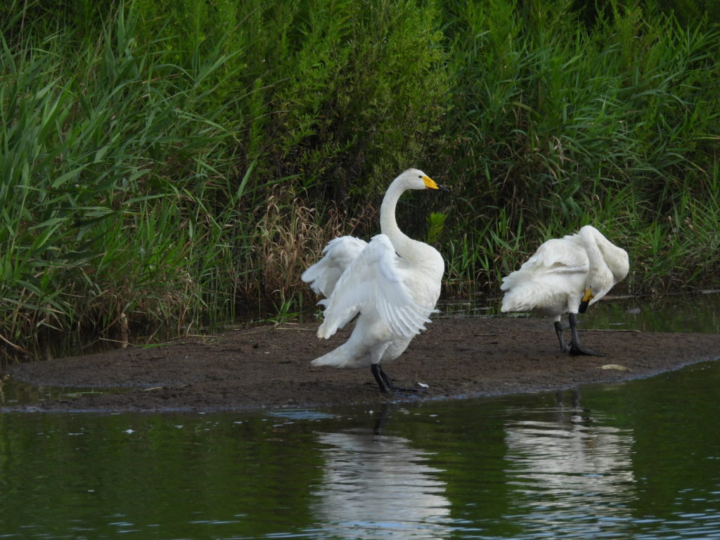 (羽を広げているのが換羽が終わったアドちゃんとロクちゃん2世🦢)