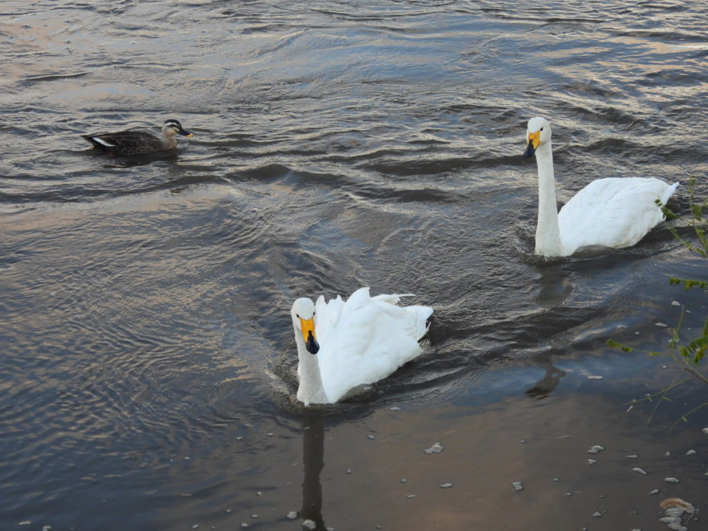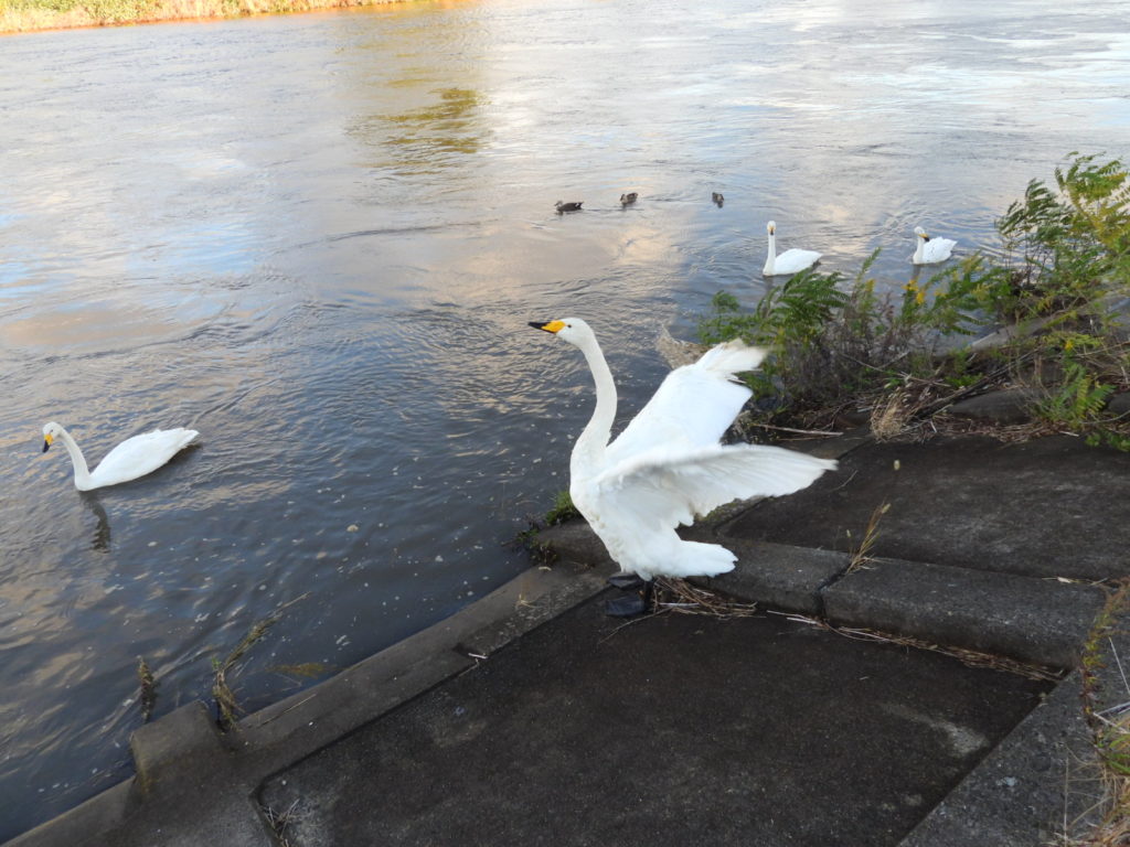 🦢雨上がりの朝の5羽の滞在組ハクチョウさんのお話!