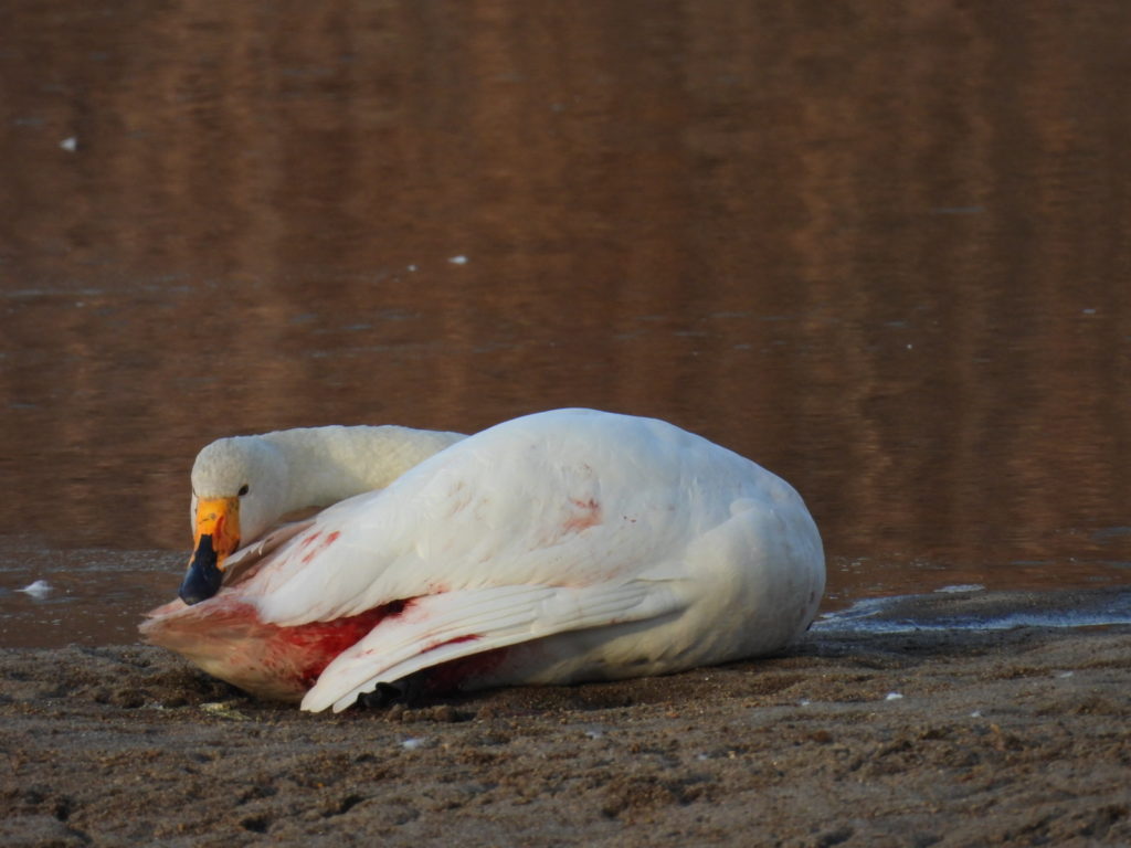 (ケガして出血しているオオハクチョウさん🦢)