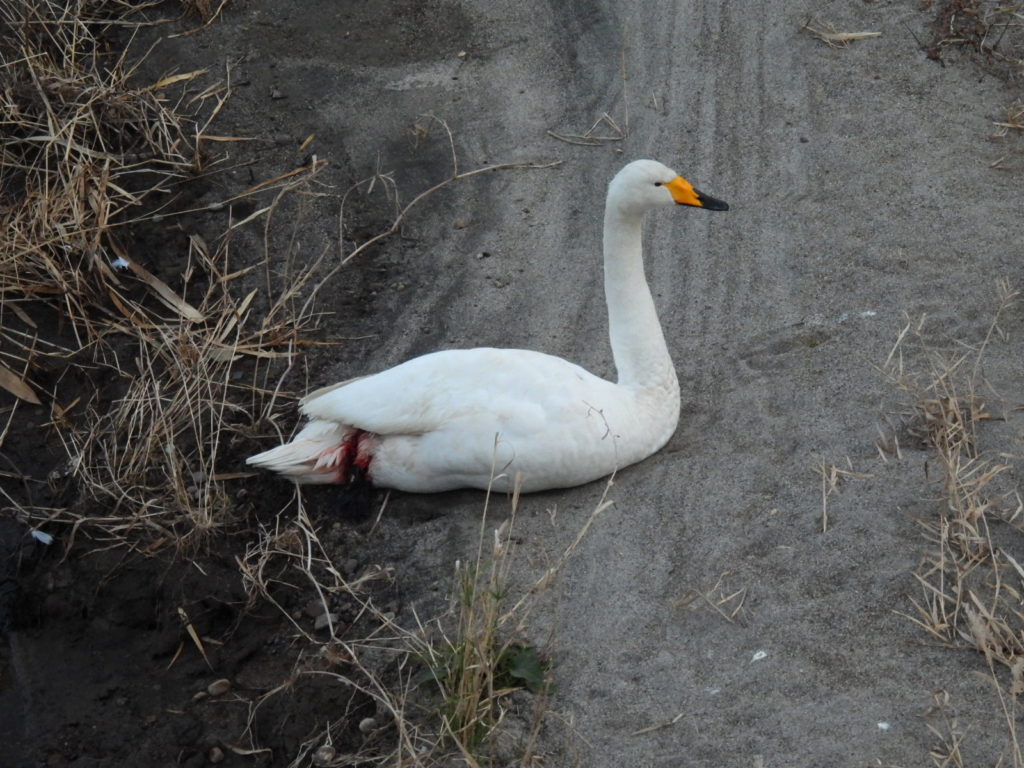 そのケガしたオオハクチョウさんは止血しているようにも見えました。