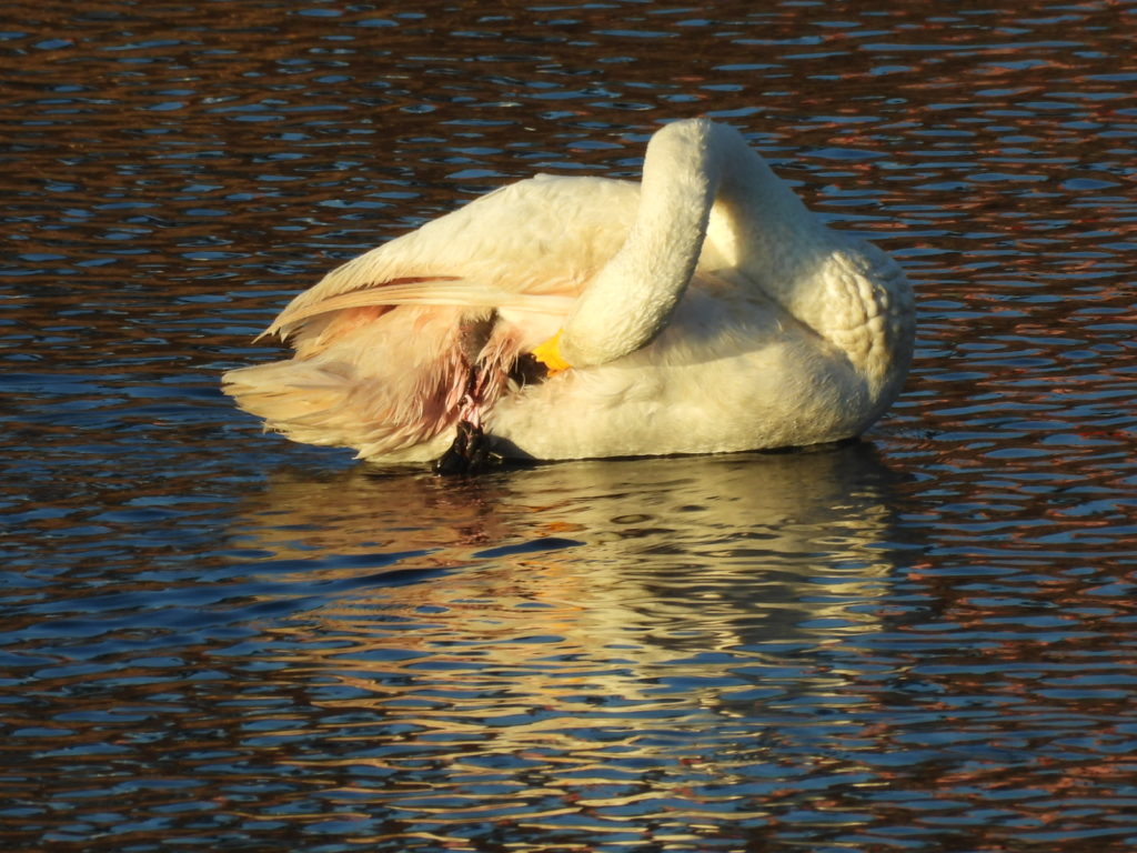 (今朝のケガしたオオハクチョウさんの様子🦢)