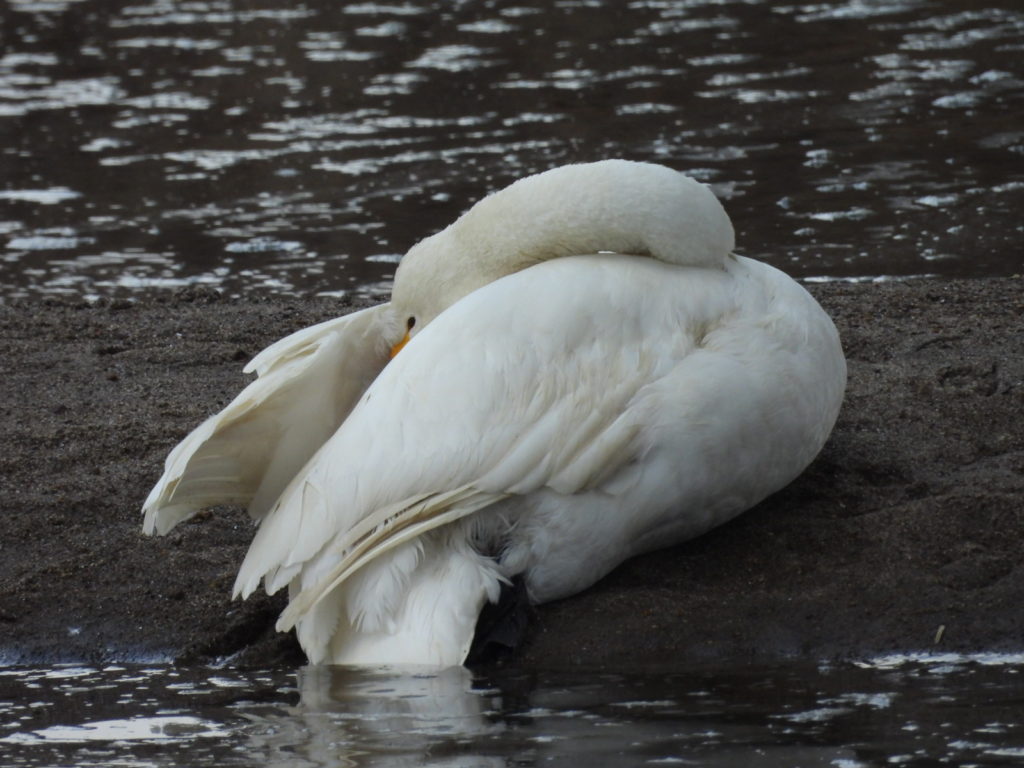 (座り込んでずっと羽繕いをしていたハスカップちゃん🦢)