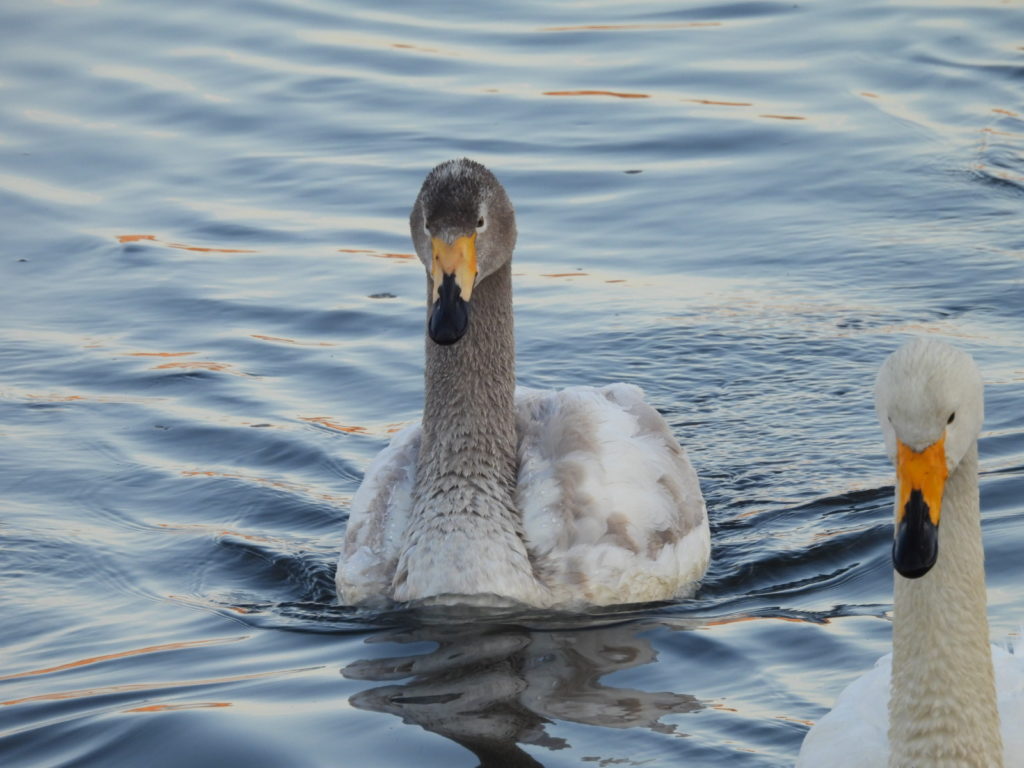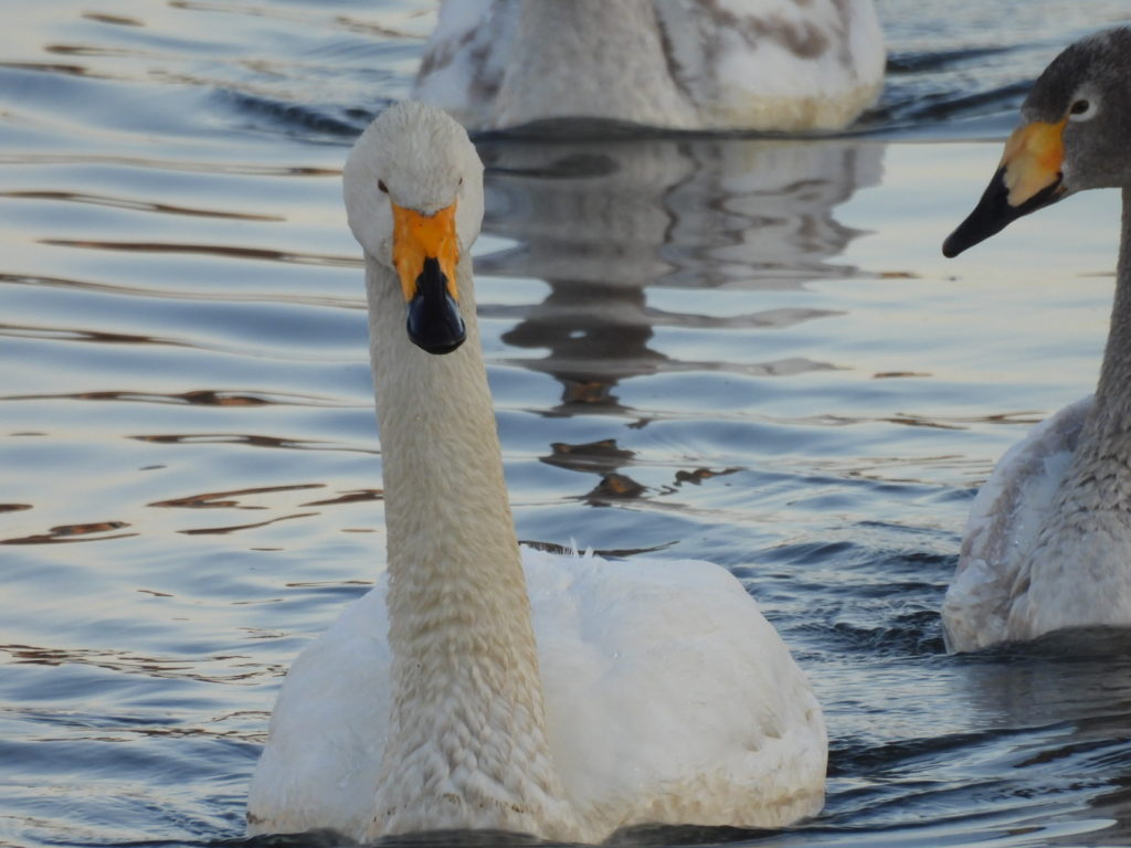 そして、いつも見かける3羽の幼鳥を連れたオオハクチョウさん一家も