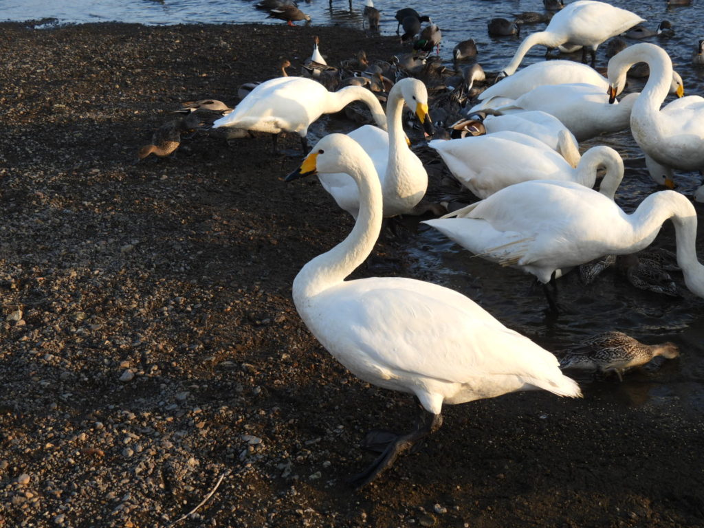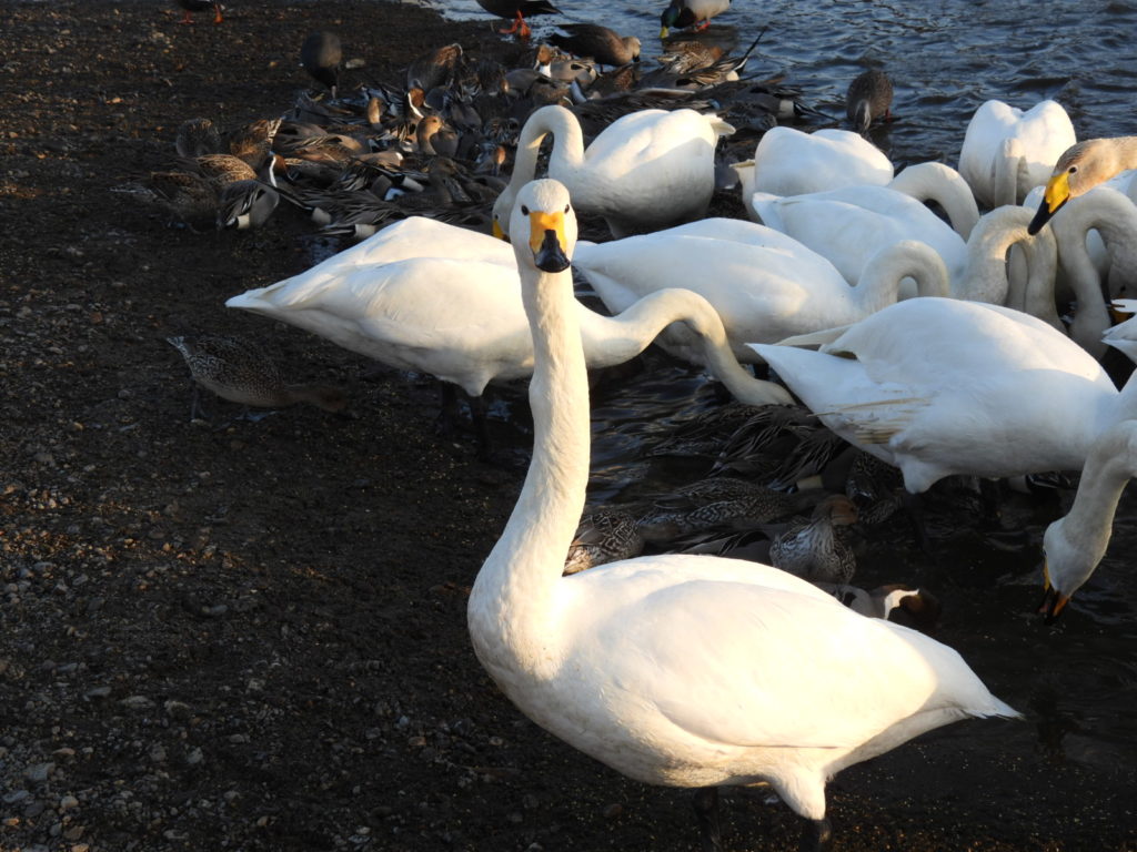 たくさんのハクチョウさんたちが集まって来ました。