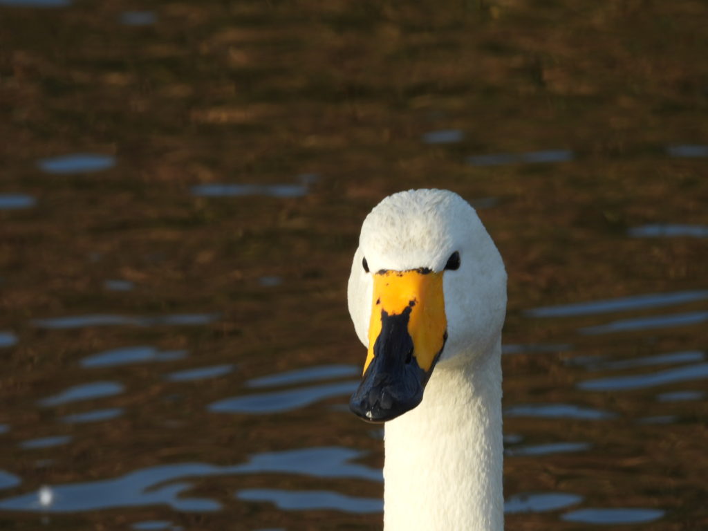 (個性的なクチバシの黒い模様をしているオオハクチョウさん🦢)