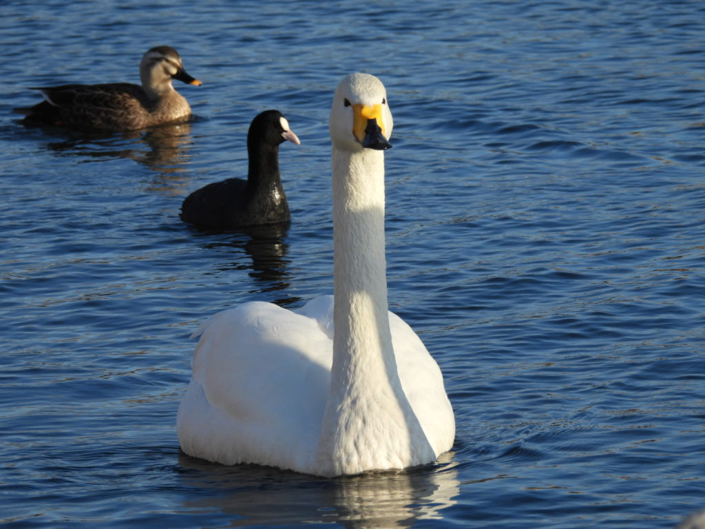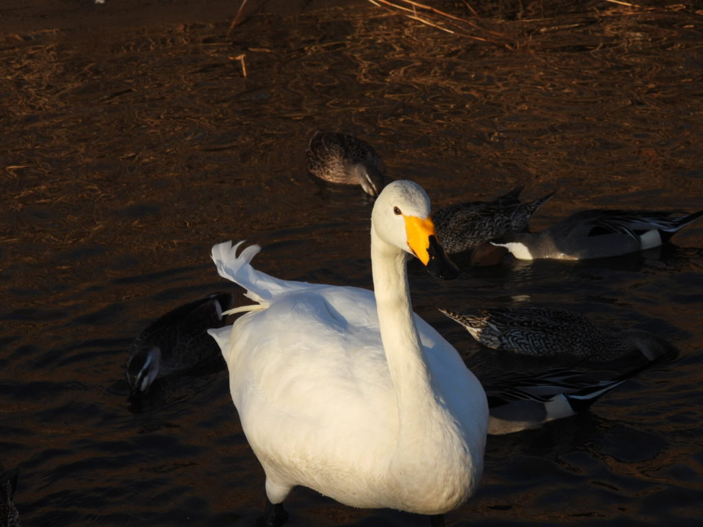 飛来組、滞在組ハクチョウさんたちが60羽ほど、